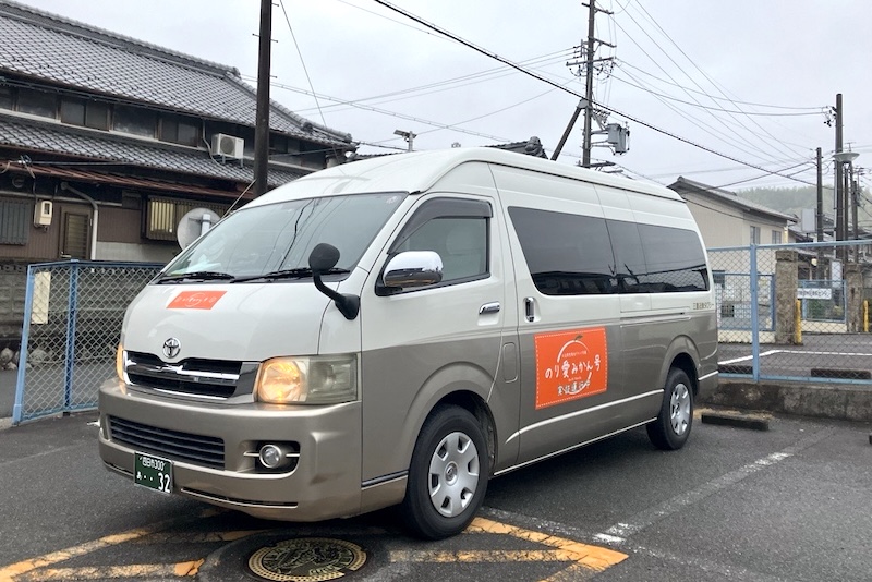 導入は上記2地域にししぶ、美明地区を加えた約1.3k㎡のエリアで、乗客定員を8人に改造したワンボックカーサイズの車両を2台運行。
